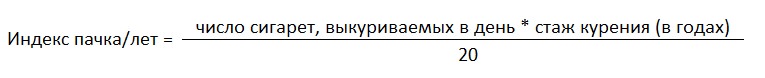 «Для расчета индекса курящего человека используется формула, предполагающая умножение количества ежедневно выкуриваемых сигарет на 12 месяцев(пачка лет)»